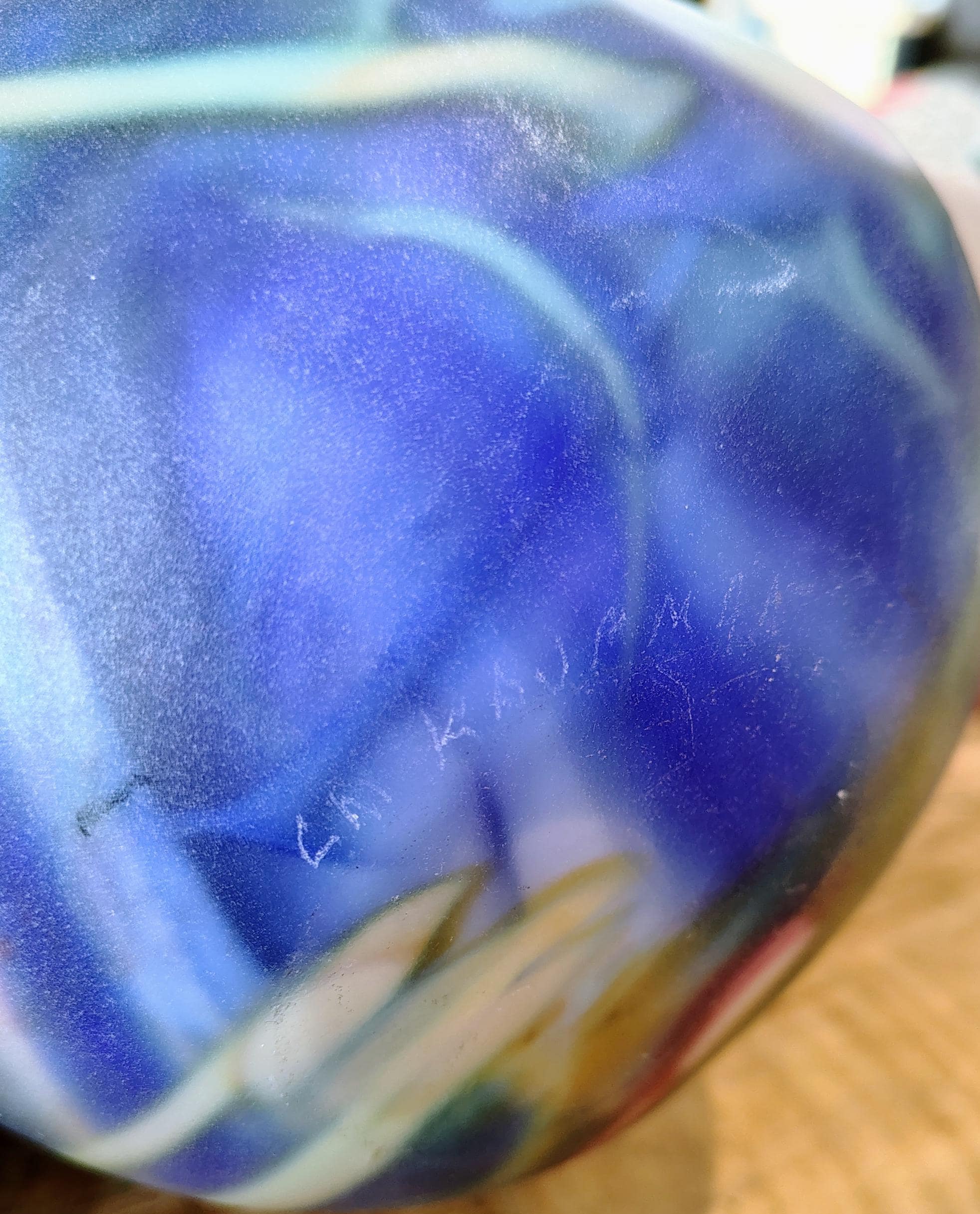 FOR SALE â Signed Kaufman studio art glass vase with cobalt interior and sculptural iridescent pod form