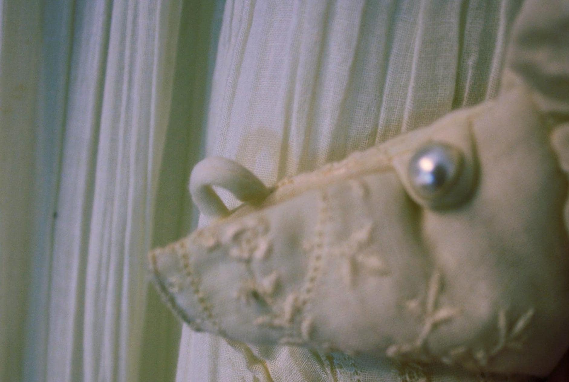 Waist & embroidery: embroidered panels and ribbon trim are all present with some gentle age-related mellowing to the embroidery.