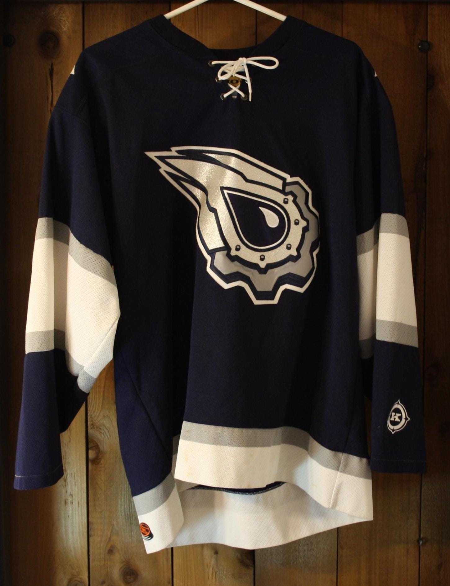 Even outside hockey circles, this design made an impression. It was a major departure from the club’s classic look and became one of the most talked-about NHL alternate jerseys of its time. That oversized mechanical oil-drop crest, silver detailing, and dark navy palette gave it a distinctly early-2000s edge that still stands out now.