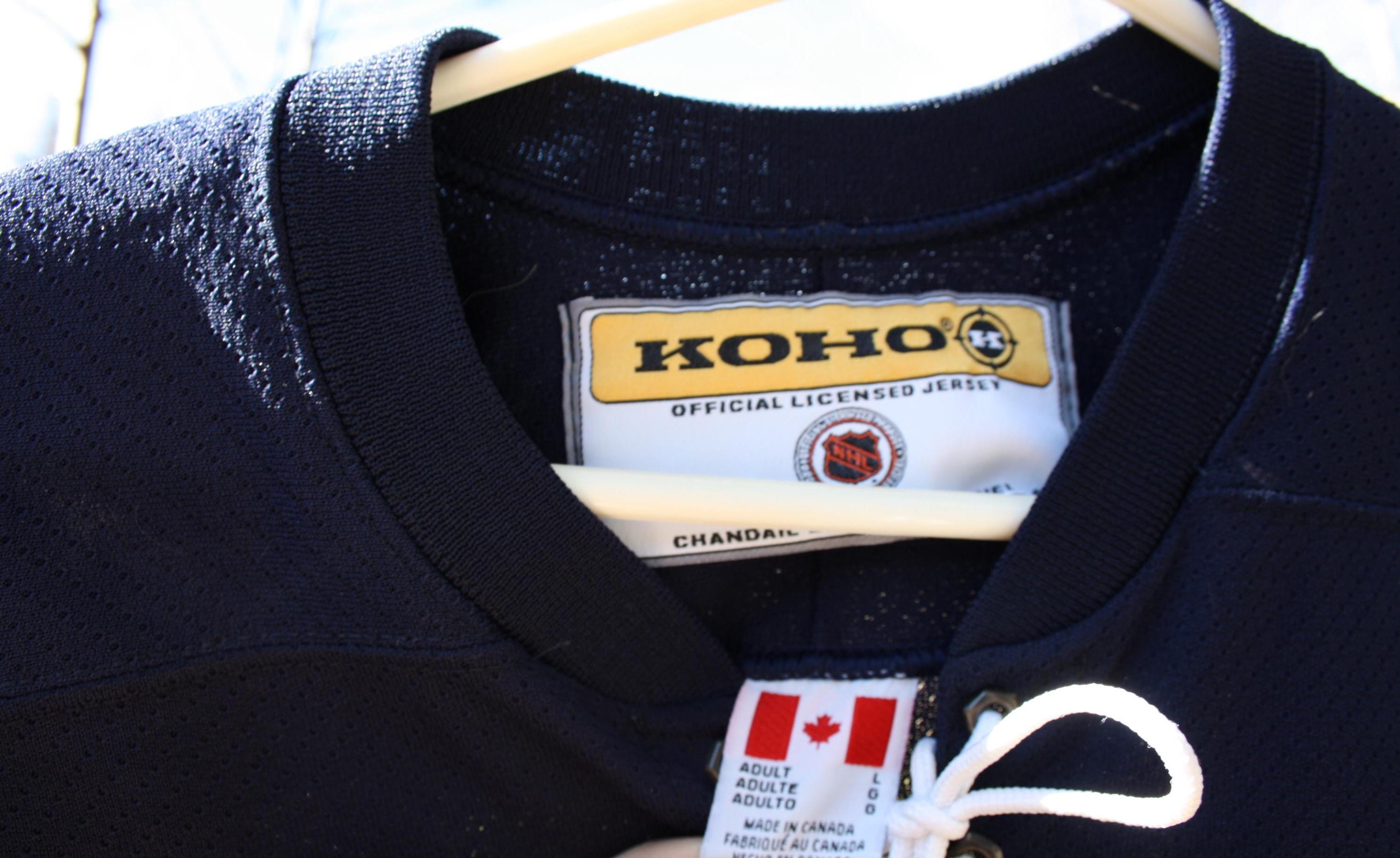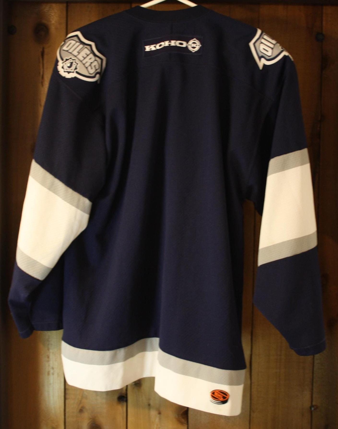 FOR SALE ☞ Vintage Edmonton Oilers KOHO McFarlane jersey, adult large, made in Canada, licensed NHL alternate hockey sweater